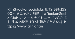 RT @rockonsocialclu: 📢8/12(月祝)22:00〜📻