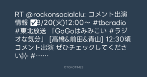 RT @rockonsocialclu: 📻コメント出演情報📢