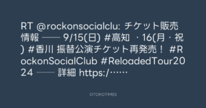 RT @rockonsocialclu: 📢チケット販売情報🎫