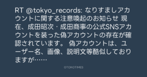 RT @tokyo_records: なりすましアカウントに関する注意喚起のお知らせ
