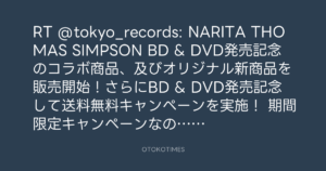 RT @tokyo_records: NARITA THOMAS SIMPSON BD & DVD発売記念のコラボ商品、及びオリジナル新商品を販売開始!さらにBD & DVD発売記念して送料無料キャンペーンを実施!
