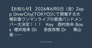 2026年6月5日(金)Zepp DiverCity(TOKYO)にて開催する大橋彩香ワンマンライブの最強バンドメンバー大決定!!!