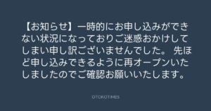 【お知らせ】一時的にお申し込みができない状況になっておりご迷惑おかけしてしまい申し訳ございませんでした。