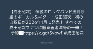 伝説のロックバンド男闘呼組のボーカル&ギター・成田昭次、初の自叙伝が2026年1月に発売!