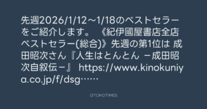 先週2026/1/12~1/18のベストセラーをご紹介します。