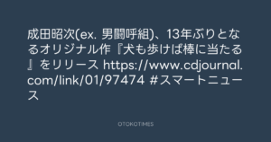 成田昭次(ex. 男闘呼組)、13年ぶりとなるオリジナル作『犬も歩けば棒に当たる』をリリース https://www.cdjournal.com/link/01/97474 #スマートニュース
