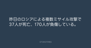 昨日のロシアによる複数ミサイル攻撃で37人が死亡、170人が負傷している。