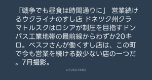 「戦争でも昼食は時間通りに」 営業続けるウクライナのすし店