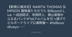 【新規公演決定】NARITA THOMAS SIMPSON 冒険者たちのうた Billboard Live ~成田昭次、寺岡呼人、青山英樹からなるバンドが1stアルバムを引っ提げてビルボードライブ公演開催~