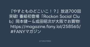 『やすとものどこいこ!?』放送700回突破! 番組初登場「Rockon Social Club」岡本健一&成田昭次が大阪でお買物!