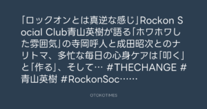 「ロックオンとは真逆な感じ」Rockon Social Club青山英樹が語る「ホワホワした雰囲気」の寺岡呼人と成田昭次とのナリトマ、多忙な毎日の心身ケアは「叩く」と「作る」、そして… #THECHANGE #青山英樹 #RockonSocialClub #THESHOWMAN