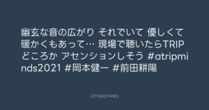 Kadar (かだる) @kadaruwaiting4u – 19:51・2022年9月17日 2022 9/17 ADDICT OF THE TRIP MINDS 岡本健一 2022-09-17 Addict of The Tripmindsさんがリポスト幽玄な音の広がり それでいて 優しくて暖かくもあって… 現場で聴いたらTRIPどころか アセンションしそう #atripminds2021 #岡本健一 #前田耕陽 Source:https://x.com/kadaruwaiting4u/status/1571089456... ADDICT OF THE TRIP MINDS text X Post 岡本健一 ADDICT OF THE TRIP MINDS 岡本健一 この記事が気に入ったら フォローしてね! Follow @OtokoTimes1988 よかったらシェアしてね! URLをコピーしました! 🎬 🐢❦えりりん❦🐢 @ERIRIN_10371021 - 18:38・2022年9月17日 kaorin @kaorin_freeway - 20:31・2022年9月17日 関連記事 Artist ADDICT OF THE TRIP MINDS 1993.10.01 Artist 岡本健一 1969.05.21