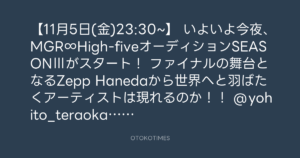 いよいよ今夜、MGR∞High-fiveオーディションSEASONⅢがスタート!