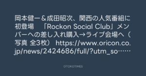 岡本健一&成田昭次、関西の人気番組に初登場 「Rockon Social Club」メンバーへの差し入れ購入→ライブ会場へ(写真 全3枚)