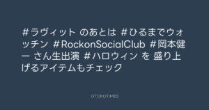 ウォッチン!スタッフ @watchinstaff – 9:15・2025年10月20日 2025 10/20 Rockon Social Club 2025-10-20 Rockon Social Clubさんがリポスト#ラヴィット のあとは #ひるまでウォッチン #RockonSocialClub #岡本健一 さん生出演 #ハロウィン を 盛り上げるアイテムもチェック Source:https://x.com/watchinstaff/status/1980065174997... Rockon Social Club text X Post Rockon Social Club この記事が気に入ったら フォローしてね! Follow @OtokoTimes1988 よかったらシェアしてね! URLをコピーしました! KURE 5-56 Presents Go! Go! Rockon! @GoGoRockon_556 - 23:10・2025年10月19日 Rockon Social Club @rockonsocialclu - 10:06・2025年10月20日 関連記事 Artist Rockon Social Club 2023.02.17