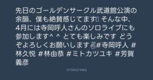 そんな中、4月には寺岡呼人さんのソロライブにも参加します^ ^