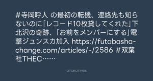 #寺岡呼人 の最初の転機、連絡先も知らないのに「レコード10枚貸してくれた」下北沢の奇跡、「お前をメンバーにする」電撃ジュンスカ加入