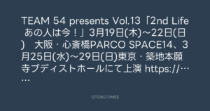 TEAM 54 presents Vol.13「2nd Life あの人は今!」3月19日(木)~22日(日) 大阪・心斎橋PARCO SPACE14、3月25日(水)~29日(日)東京・築地本願寺ブディストホールにて上演