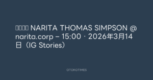 🎬 NARITA THOMAS SIMPSON @narita.corp – 15:00・2026年3月14日(IG Stories)