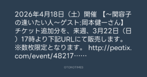 チケット追加分を、来週、3月22日(日)17時より下記URLにて販売します。