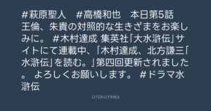 集英社「大水滸伝」サイトにて連載中、「木村達成、北方謙三「水滸伝」を読む。」第四回更新されました。