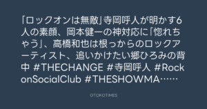 「ロックオンは無敵」寺岡呼人が明かす6人の素顔、岡本健一の神対応に「惚れちゃう」、高橋和也は根っからのロックアーティスト、追いかけたい郷ひろみの背中 #THECHANGE #寺岡呼人 #RockonSocialClub #THESHOWMAN