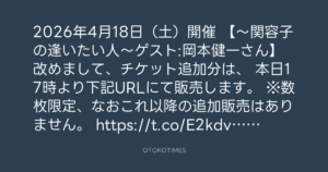 改めまして、チケット追加分は、