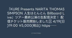 「KURE Presents NARITA THOMAS SIMPSON 人生はとんとん Billboard Live」ツアー最終公演の生配信決定!