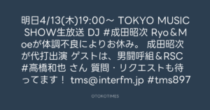 TOKYO MUSIC SHOW @Radio_TMS – 午後6:32 · 2023年4月12日