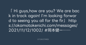 「 Hi guys,how are you? We are back in track again! I’m looking forward to seeing you all for the fir」 https://okamotokenichi.com/messages/2021/11/12/1002/ #岡本健一オフィシャルサイト