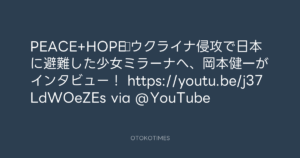 Addict of The Tripminds @Atripminds2021 – 23:07・2022年7月2日 2022 7/02 ADDICT OF THE TRIP MINDS 岡本健一 2022-07-02 PEACE+HOPE★ウクライナ侵攻で日本に避難した少女ミラーナへ、岡本健一がインタビュー! https://youtu.be/j37LdWOeZEs via @YouTube Source:https://x.com/Atripminds2021/status/15432349599... ADDICT OF THE TRIP MINDS text X Post 岡本健一 ADDICT OF THE TRIP MINDS 岡本健一 この記事が気に入ったら フォローしてね! Follow @OtokoTimes1988 よかったらシェアしてね! URLをコピーしました! tokyofm_space @tokyofm_space - 20:55・2022年7月2日 Addict of The Tripminds @Atripminds2021 - 0:05・2022年7月3日 関連記事 Artist ADDICT OF THE TRIP MINDS 1993.10.01 Artist 岡本健一 1969.05.21