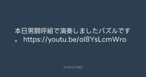 Addict of The Tripminds @Atripminds2021 – 0:48・2022年7月17日 2022 7/17 ADDICT OF THE TRIP MINDS 岡本健一 2022-07-17 本日男闘呼組で演奏しましたパズルです。 https://youtu.be/aI8YsLcmWro Source:https://x.com/Atripminds2021/status/15483336928... ADDICT OF THE TRIP MINDS text X Post 岡本健一 ADDICT OF THE TRIP MINDS 岡本健一 この記事が気に入ったら フォローしてね! Follow @OtokoTimes1988 よかったらシェアしてね! URLをコピーしました! 岡本健一 @kenichi.okamoto - 23:45・2022年7月16日(IG post) Addict of The Tripminds @Atripminds2021 - 0:51・2022年7月17日 関連記事 Artist ADDICT OF THE TRIP MINDS 1993.10.01 Artist 岡本健一 1969.05.21