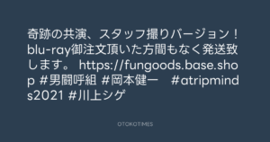 🎬 Addict of The Tripminds @Atripminds2021 – 22:07・2022年7月19日 2022 7/19 ADDICT OF THE TRIP MINDS 岡本健一 2022-07-19 奇跡の共演、スタッフ撮りバージョン!blu-ray御注文頂いた方間もなく発送致します。 https://fungoods.base.shop #男闘呼組 #岡本健一 #atripminds2021 #川上シゲ Source:https://x.com/Atripminds2021/status/15493804572... ADDICT OF THE TRIP MINDS text VIDEO X Post 岡本健一 ADDICT OF THE TRIP MINDS 岡本健一 この記事が気に入ったら フォローしてね! Follow @OtokoTimes1988 よかったらシェアしてね! URLをコピーしました! ローチケ(ローソンチケット) @lawson_ticket - 13:00・2022年7月19日 Addict of The Tripminds @Atripminds2021 - 22:30・2022年7月19日 関連記事 Artist ADDICT OF THE TRIP MINDS 1993.10.01 Artist 岡本健一 1969.05.21