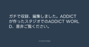 ガチで収録、編集しました。ADDICT が作ったスタジオでのADDICT WORLD、是非ご覧ください。