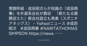 男闘呼組・成田昭次らが役員の「成田商事」を外資系会社が買収 「新たなる展開迎えた」新会社設立も発表(スポニチアネックス) – Yahoo!ニュース