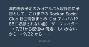 年内発表予定の2ndアルバム収録曲に予想として、これまでの Rockon Social Club 新曲情報まとめ(1st アルバム1988に収録されない曲)