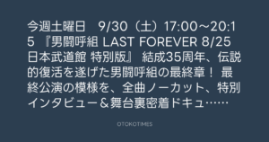 『男闘呼組 LAST FOREVER 8/25 日本武道館 特別版』 結成35周年、伝説的復活を遂げた男闘呼組の最終章!