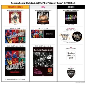 Rockon Social Club 2nd ALBUM “Don’t Worry Baby” 購入特典を一覧表でまとめました。(現時点)