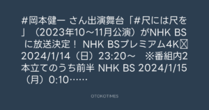 #岡本健一 さん出演舞台「#尺には尺を」(2023年10〜11月公演)がNHK BS に放送決定!