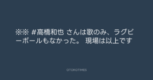 ※※ #高橋和也 さんは歌のみ、ラグビーボールもなかった。