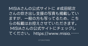 MISIAさんの公式サイトに #成田昭次 さんの炊き出し支援の写真も掲載していますが、一般の方も写ってるため、こちらの転載はお控えさせていただきます。