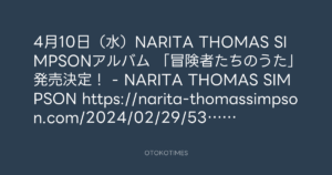 4月10日(水)NARITA THOMAS SIMPSONアルバム 「冒険者たちのうた」発売決定! – NARITA THOMAS SIMPSON https://narita-thomassimpson.com/2024/02/29/531/
