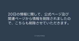 OTOKOTIMES @OtokoTimes1988 – 16:05・2024年4月13日 2024 4/13 2024-04-13 20日の情報に関して、公式ページ及び関連ページから情報を削除されましたので、こちらも削除させていただきます。 Source:https://x.com/OtokoTimes1988/status/17790431493... text X Post この記事が気に入ったら フォローしてね! Follow @OtokoTimes1988 よかったらシェアしてね! URLをコピーしました! NARITA THOMAS SIMPSON @narita.corp - 14:54・2024年4月13日(IG Stories) ニッポン放送「KURE オキーフ Presents 成田昭次のRockon The Knight」 @RockonTheKnight - 16:50・2024年4月13日