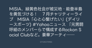 MISIA、緑黄色社会が被災地・能登半島を勇気づける! 7月チャリティーライブ MISIA「心と心繋げたい」(デイリースポーツ)