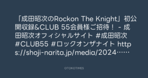OTOKOTIMES @OtokoTimes1988 – 18:07・2024年5月4日 2024 5/04 2024-05-04 「成田昭次のRockon The Knight」初公開収録&CLUB 55会員様ご招待! – 成田昭次オフィシャルサイト #成田昭次 #CLUB55 #ロックオンザナイト https://shoji-narita.jp/media/2024/3262/ Source:https://x.com/OtokoTimes1988/status/17866841119... text X Post この記事が気に入ったら フォローしてね! Follow @OtokoTimes1988 よかったらシェアしてね! URLをコピーしました! OTOKOTIMES @OtokoTimes1988 - 18:02・2024年5月4日 ニッポン放送「KURE オキーフ Presents 成田昭次のRockon The Knight」 @RockonTheKnight - 18:15・2024年5月4日