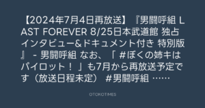 【2024年7月4日再放送】『男闘呼組 LAST FOREVER 8/25日本武道館 独占インタビュー&ドキュメント付き 特別版』 – 男闘呼組