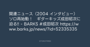 OTOKOTIMES @OtokoTimes1988 – 14:55・2024年6月16日 2024 6/16 2024-06-16 📰 関連ニュース(2004 インタビュー) ソロ再始動! ギターキッズ成田昭次に迫る!! – BARKS #成田昭次 https://www.barks.jp/news/?id=52335335 Source:https://x.com/OtokoTimes1988/status/18022183805... text X Post この記事が気に入ったら フォローしてね! Follow @OtokoTimes1988 よかったらシェアしてね! URLをコピーしました! OTOKOTIMES @OtokoTimes1988 - 14:52・2024年6月16日 Addict of The Tripminds @Atripminds2021 - 22:19・2024年6月16日