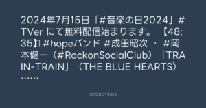 2024年7月15日「#音楽の日2024」#TVer にて無料配信始まります。