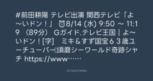 OTOKOTIMES @OtokoTimes1988 – 15:14・2024年8月9日
