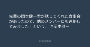 先輩の岡本健一君が誘ってくれた食事会があったので、他のメンバーにも連絡してみました」という。
